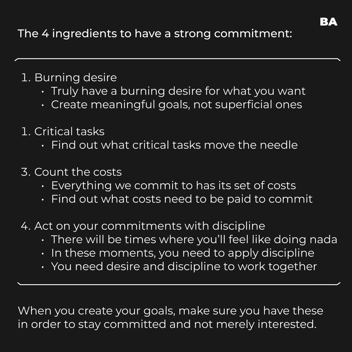To make sure that you stay committed to this vision and not only interested, make sure you have the 4 ingredients to commitment: