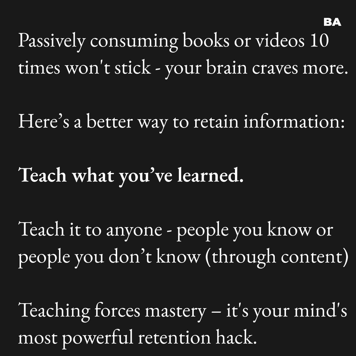 All you get is endless dopamine hits. It’s mental masturbation at its finest. It feels good. You feel like you’re making progress. We believe we are because we grow up being taught that learning is about devouring textbooks and acing tests. Again, most people weren’t taught the right way to learn or at least the most effective way to learn in the world we live in currently.